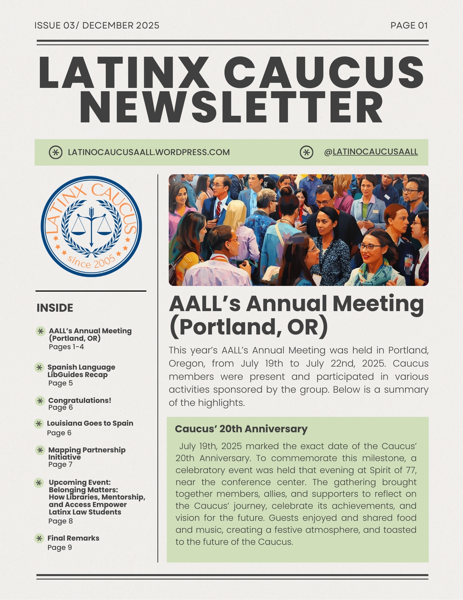 The Latinx Law Librarians Caucus publishes a newsletter once a year since 2023. Contributions are welcome!